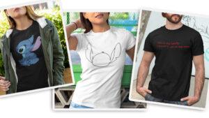 - Vibrant & Artsy: Αν σου αρέσει το χρώμα, προτίμησε μια στάμπα που μοιάζει με υδατογραφία (watercolor) του Stitch να κάνει surf. Το καλλιτεχνικό ύφος το κάνει να ξεφεύγει από το “παιδικό”.