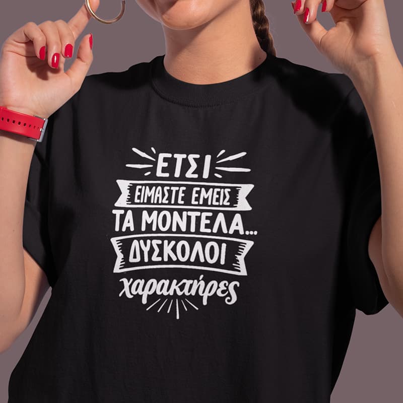 “Έτσι είμαστε εμείς τα μοντέλα… δύσκολοι χαρακτήρες”. Αν αυτή η φράση σάς εκφράζει απόλυτα (ή περιγράφει τέλεια την κολλητή σας), τότε μόλις βρήκατε το νέο αγαπημένο σας outfit. Αυτό το T-shirt δεν είναι απλά ένα ρούχο, είναι μια δήλωση. Είναι η τέλεια δικαιολογία για κάθε φορά που αργείτε, που έχετε τις “ιδιοτροπίες” σας ή που απλά θέλετε να λάμψετε.
